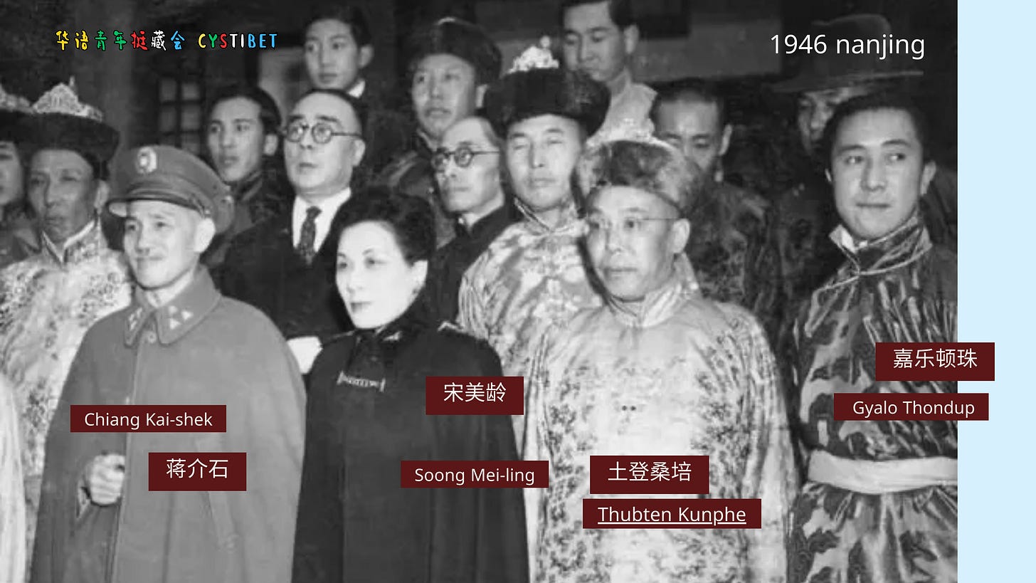 十几岁时,拉萨噶厦政府把嘉乐顿珠送去中华民国首都南京,他进入政工干校学习。在那是蒋介石主政、“党国合一”的年代,他并不是普通的留学生,而是被安置在蒋介石身边,由蒋家“照顾”。周美里在访谈里特别提到:他接受的不是正规学校教育,而是类似私塾式的家教,蒋介石请老师到家里教他中文和历史。久而久之,他的中文说得极为流利——这门语言,后来成了他在国民党、中共之间辗转游走的工具。